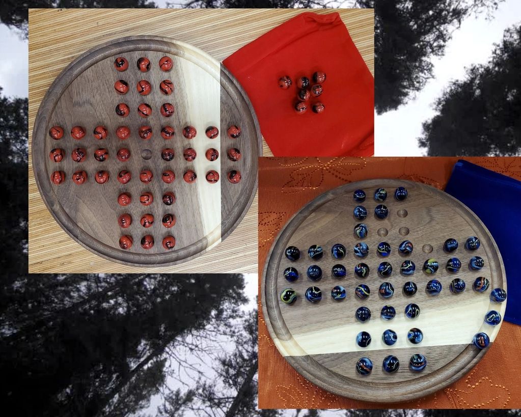 10 3/4" diameter 1 1/8" thick. Comes with your choice of marble color and velvet storage bag. This solid nostalgia piece is sure to become a family heirloom.