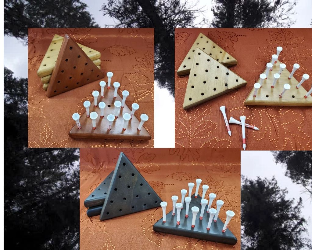 4 1/2" x 4 1/2" x 4 1/2". Comes with gold tees and is presented in a velvet storage bag.