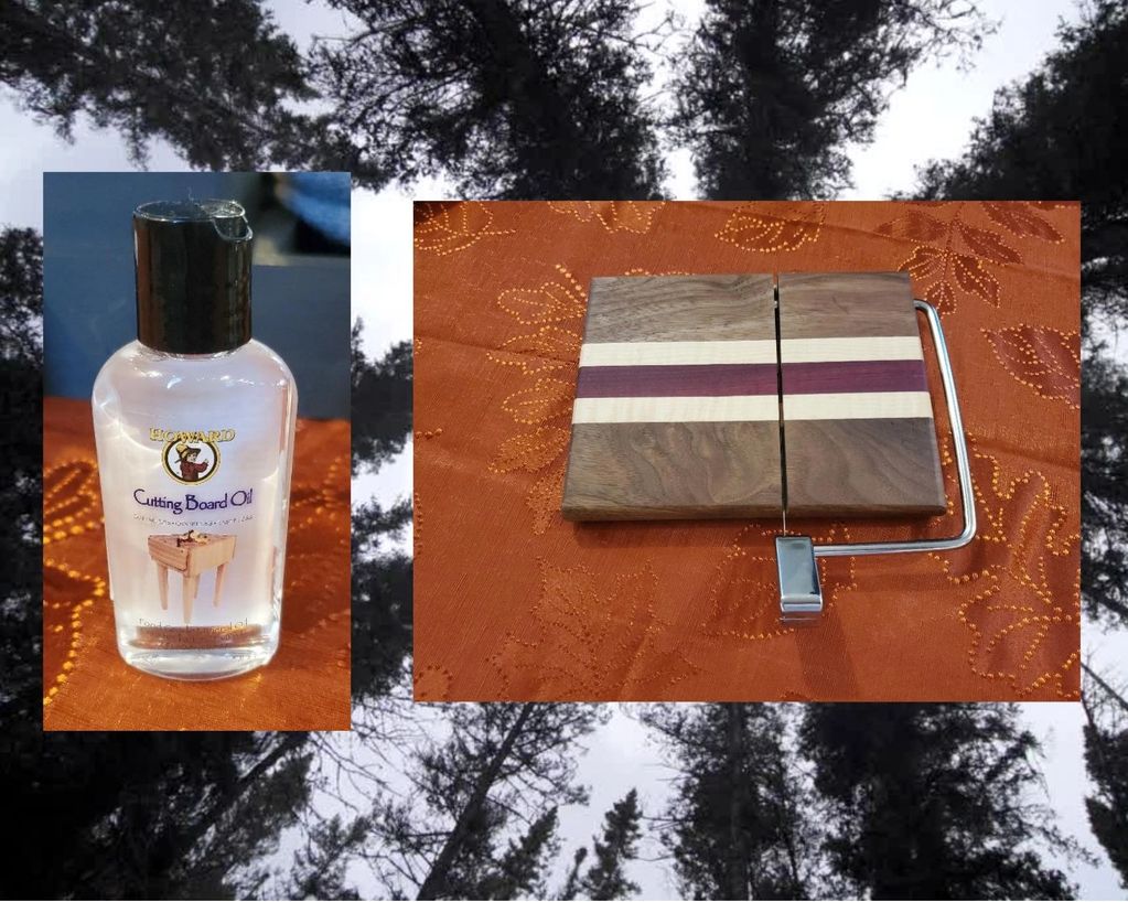 A smaller version of our cutting board with attached Stainless steel wire slicer.